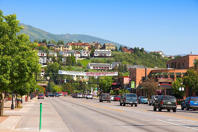 コロラド州スティームボート スプリングスのメインストリート。画像クレジット: Tupungato – Stock.adobe.com。