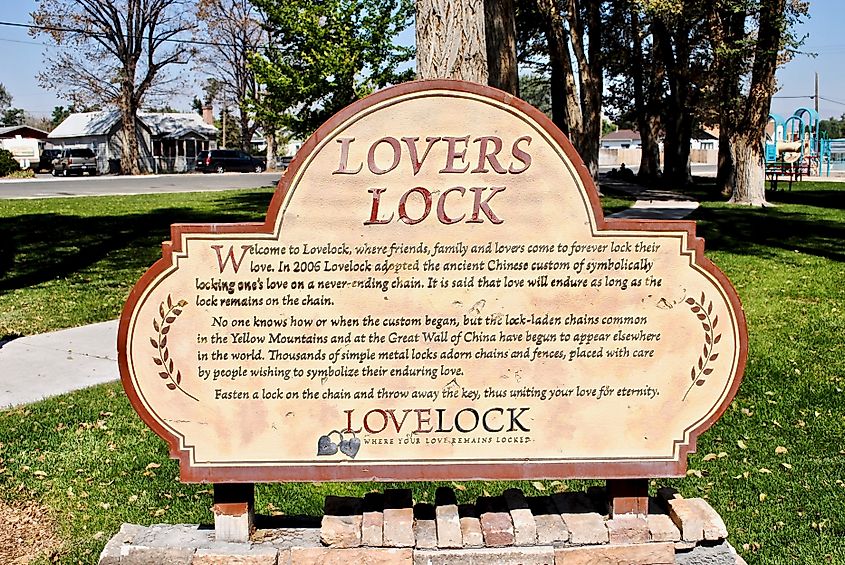 ネバダ州ラブロックのラバーズ ロック プラザでは、カップルが「無限の鎖」に南京錠を取り付けて愛を象徴しています。編集クレジット: EWY Media / Shutterstock.com。
