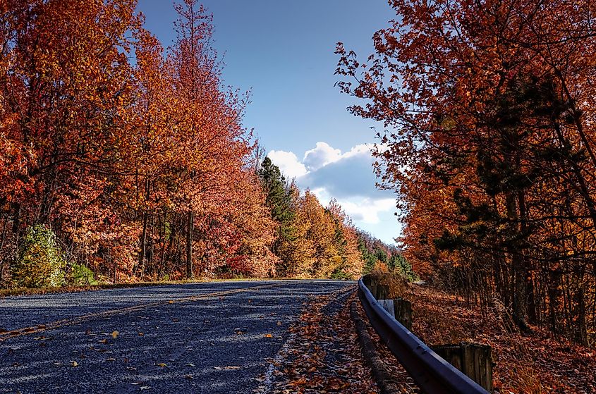 アーカンソー州とオクラホマ州を結ぶタリメナ シーニック ドライブ沿いには、歴史と素晴らしさが待っています。紅葉が本当に素晴らしいため、多くの旅行者はこのドライブを体験するために秋まで待ちます。このルートは、アーカンソー州メナとオクラホマ州タリヘナの間のワシタ山脈を貫く全長 54 マイルのバイウェイで、立ち止まって景色を眺めることができる見晴らしの良い場所がいくつかあります。