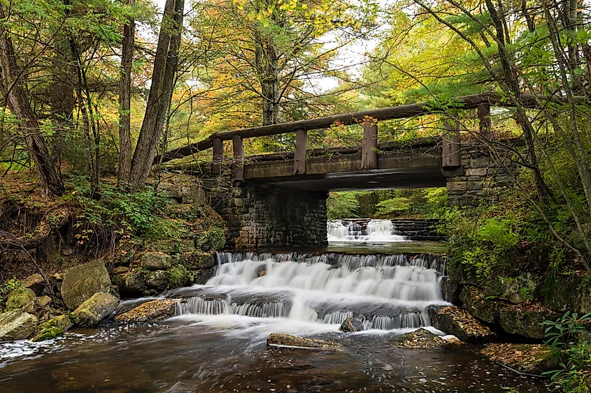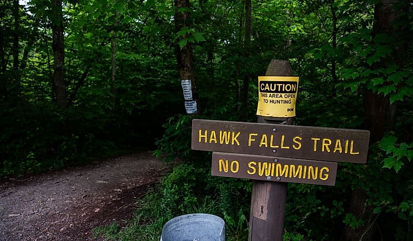 ホワイトヘブンのヒッコリーランステートパークのホークフォールズトレイルヘッド。 ShutterStock経由の画像クレジットKMARSH。