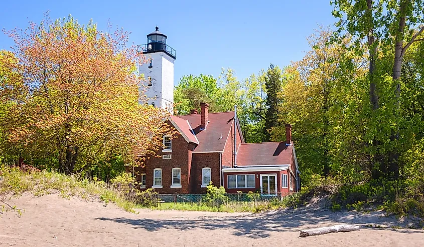 プレスクアイル州立公園は、ペンシルベニア州で唯一の本物の砂浜の海岸線を網羅したエリー湖に突き出ている半島に座っています。この公園には、風と波のアクションによって形作られた3,200エーカーがあり、今日の間を歩いたりボートを歩くことができるラグーン、砂スピット、シフトビーチを形成しています。