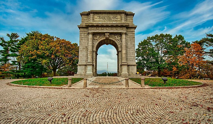 バレーフォージ国立歴史公園の国立記念アーチ。 Adobestock経由のImage Credit BrianHphoto。