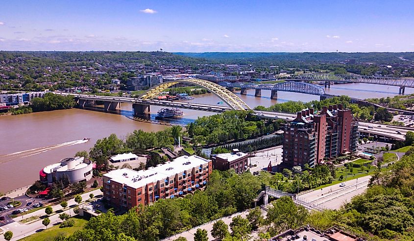 オハイオ川と隣接するオハイオ州シンシナティ、ケンタッキー州ニューポート。