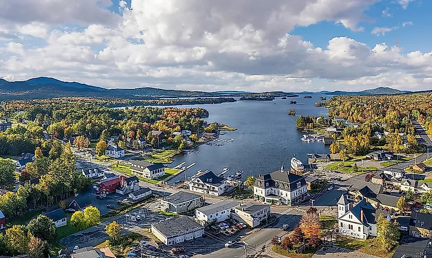 メイン州グリーンビルの空撮。