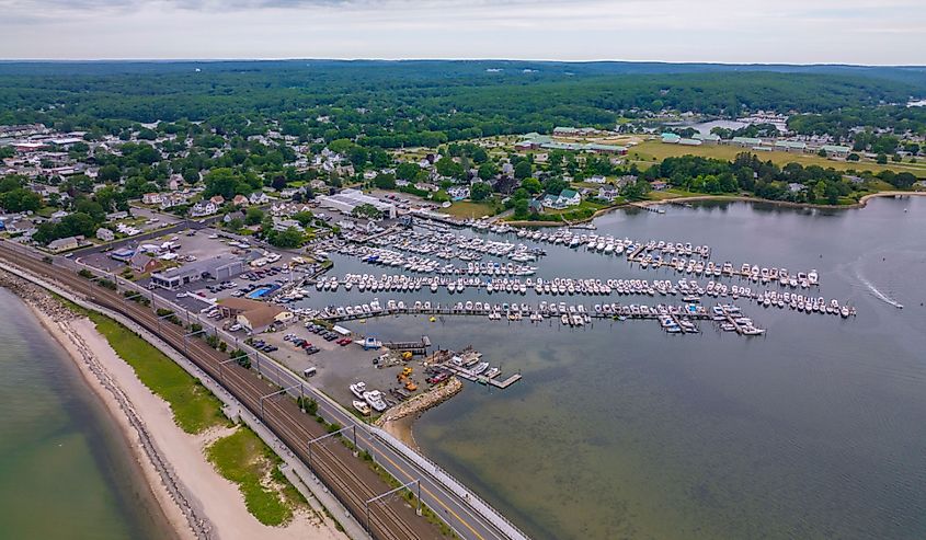 コネチカット州イーストライムのナイアンティックビーチとポートマリーナを一望します。画像クレジット:Wangkun Jia(Shutterstock経由)