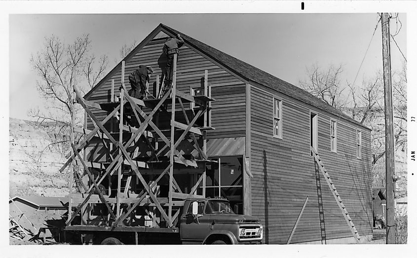 セオドア・ルーズベルト国立公園にあるジョー・フェリス・ジェネラル・ストアの改装工事の写真。 (クレジット:セオドア・ルーズベルトデジタル図書館。ディキンソン州立大学。)