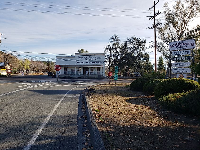 サンタ イザベル ジェネラル ストアは 1884 年に建設され、1890 年代後半に動物飼料や農産物を専門に扱うセクションを設けて拡張されました。サンディエゴの田舎でのゴールドラッシュの時代、入植者、農民、そして旅をする探鉱者にとって、それは重要なビジネスでした。この店のユニークな日干しれんが造りの偽の正面ファサードは、この様式の建築様式が郡内に残る唯一の例である。この店の元の所有者についてはほとんど詳細がわかっていませんが、移動する人々にとって重要な食料や必需品の供給源であったことは明らかです。