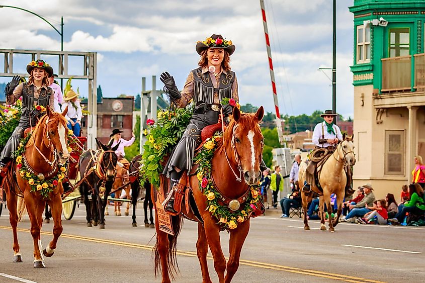 オレゴン州ペンドルトンで行われた賑やかなペンドルトンラウンドアップに参加する騎手たち。編集クレジット: Png Studio Photography / Shutterstock.com