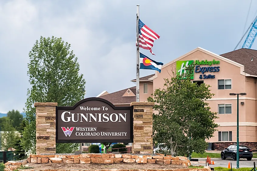 コロラド州ガニソンにあるウェスタンコロラド大学の看板。画像クレジット: Kristi Blokhin / Shutterstock.com。