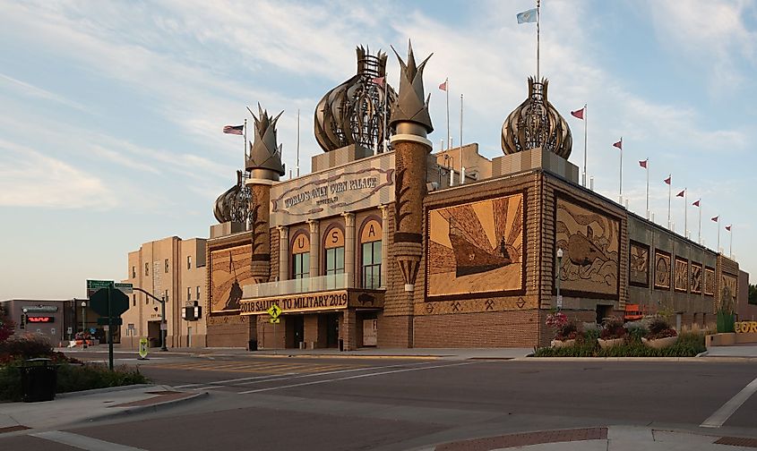 サウスダコタ州を知っていると思っているなら、もう一度考えてください。サウスダコタ州南東部の大草原の真ん中にコーンパレスがあります。ラスベガスの砂漠にあるものと同じように、コーン パレスは、トウモロコシに特化した豪華なムーア リバイバル建築です。すべてがトウモロコシをテーマにしており、何千ものトウモロコシの穂で作られた巨大な壁画が毎年変わります。