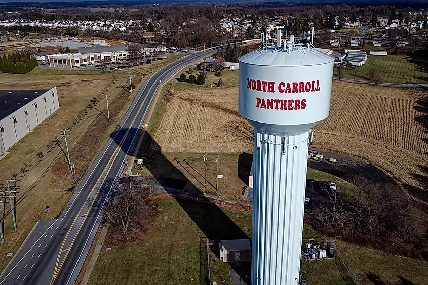 給水塔を特徴とするメリーランド州ハムステッドの俯瞰ショット。画像クレジット Justin Summers、Shutterstock より