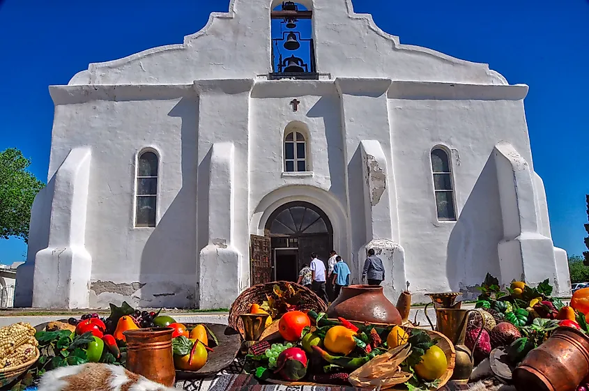 国境沿いにあるもう 1 つの町、サン エリザリオには、西部開拓時代とメキシコが融合した豊かな歴史があります。街中には日干しレンガの白壁が張り巡らされ、その境界線から一歩外に出ると、見渡す限りの綿花畑が広がる。サン エリザリオ プレシディオ チャペルは、古代の木製ドアと湾曲した壁が特徴で、1882 年から使用されています。しかし、その敷地の歴史は 1789 年に設立された元々の礼拝所にまで遡ります。