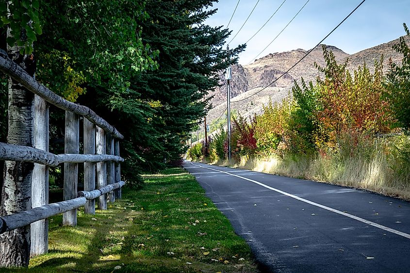 アイダホ州ケッチャムにある、紅葉が生い茂る静かな自転車道。