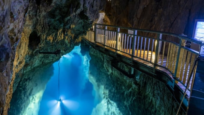 日本三大鍾乳洞の一つである龍泉洞は、岩手を代表する観光地です。 7つの地底湖の中でも特に透明度が高く、深さは98メートルに達するともいわれる第三湖。涼しい洞窟内では、湖面に反射する神秘的な青色が幻想的な雰囲気を醸し出しています。