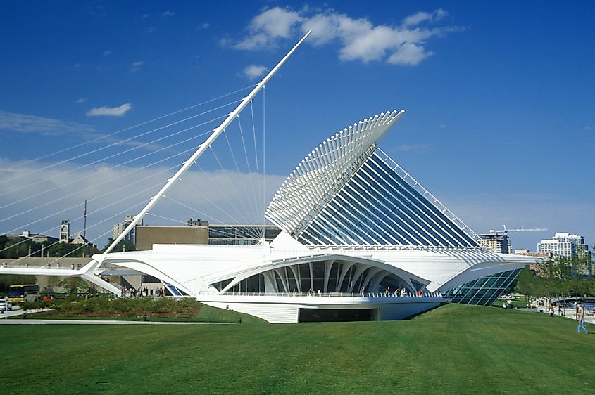 ミルウォーキー美術館 (MAM) はウィスコンシン州最大で、34,000 点以上の美術品を所蔵しており、1888 年に市初の美術館として地味なスタートを切った当初とは大きく異なります。ミルウォーキーのダウンタウン、ミシガン湖畔の 24 エーカーのキャンパスに位置し、スペイン人建築家サンティアゴなどの著名な建築家が設計した建物のおかげで、視覚的に素晴らしいランドマークであり、誇りでもあります。カラトラバ。彼の最初の米国デザインであるクアドラッチ パビリオンは、自然からインスピレーションを得た白い骨格の形を利用した彼の特徴的なスタイルを反映しており、パビリオンは鳥が飛び立っているように見えます。