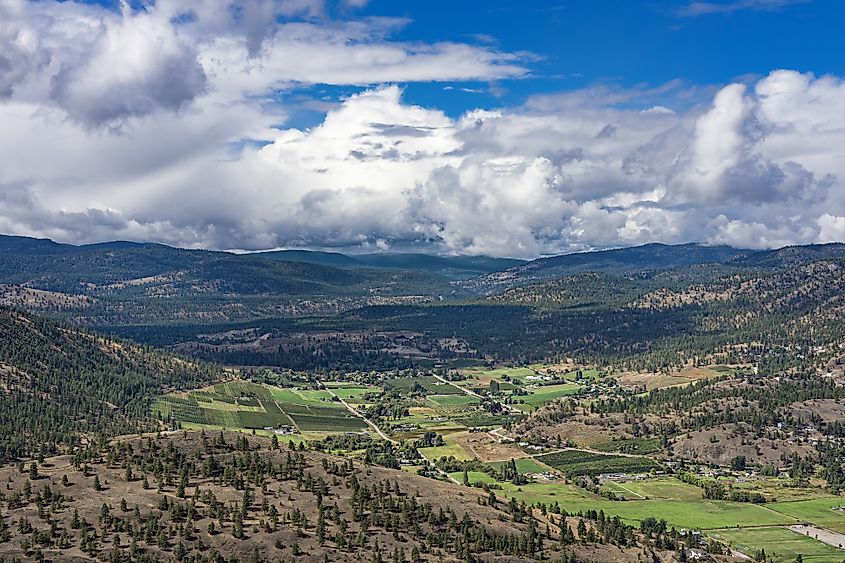 ブリティッシュコロンビア州サマーランド近くのブドウ畑と農地。
