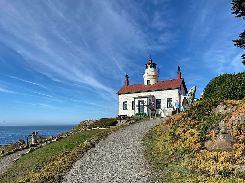 丘の上のバッテリーポイント灯台に近づいてきました。クレジット: アンドリュー・ダグラス