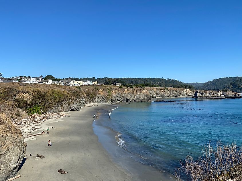 ポルトガルのビーチを背景に、メンドシーノのメイン ストリートがそびえ立っています。クレジット: アンドリュー・ダグラス
