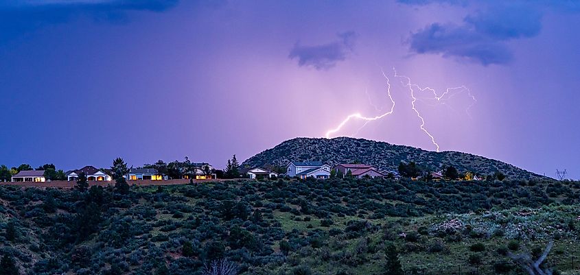 アリゾナ州プレスコットバレーの家々の上に落雷。