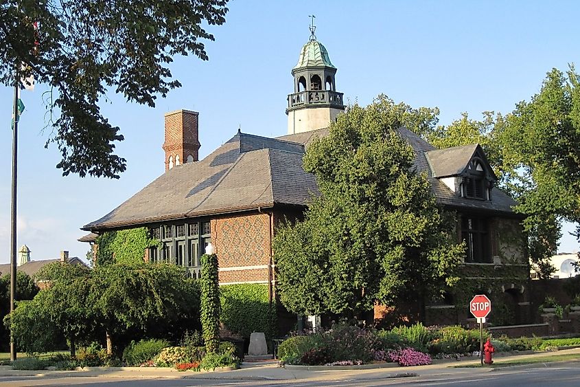 レイク フォレスト市庁舎、イリノイ州レイク フォレスト。画像クレジット Teem08、En。ウィキペディア、CC By-sa 3.0、ウィキメディア コモンズ経由