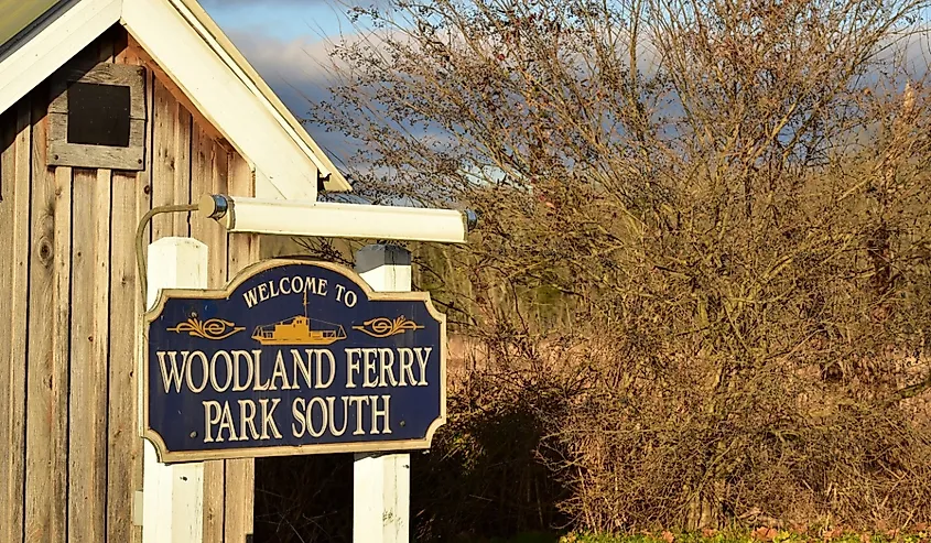 ローレルとデラウェア州シーフォードを結ぶウッドランド フェリーの歴史的象徴的な標識。