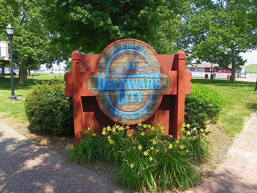 デラウェアシティへの訪問者を歓迎するサイン。画像クレジット: J. Stephen Conn、Flickr.com 経由。