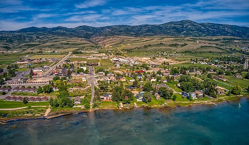 ユタ州ベアー湖の岸辺にあるガーデンシティを一望します。