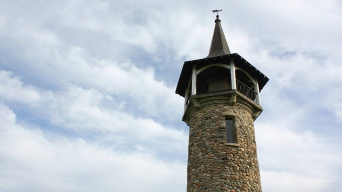 グランドリバーのほとりにあるウォータールーパイオニアメモリアルタワーは1926年に建設されました。「記念塔」という用語は非常に大きな構造を示唆しているかもしれませんが、この石の塔は控えめな18.9メートルに立っており、魅力的な外観を与えています。ウォータールー地域でのドイツの入植地の設立を記念するために、1800年から3年間にわたって建設されました。
