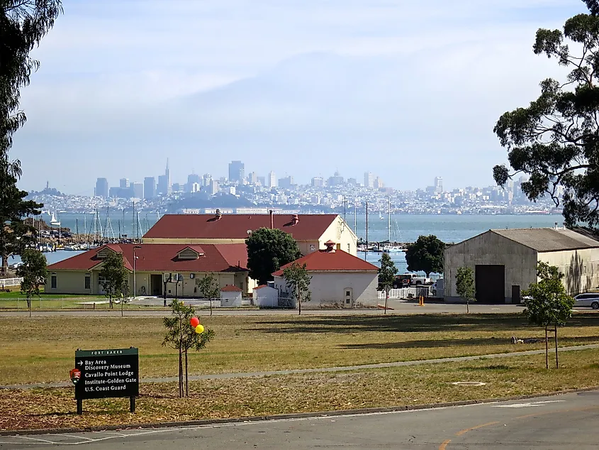 ベイカー砦は 25 棟を超える旧陸軍の建物で構成され、335 エーカーの基地で、観光客はそのすぐ南にあるゴールデン ゲート ブリッジを眺めることができます。 1902 年から 1910 年にかけて建設され、南北戦争から第一次世界大戦の間の要塞建設を更新する陸軍の取り組みの一環でした。