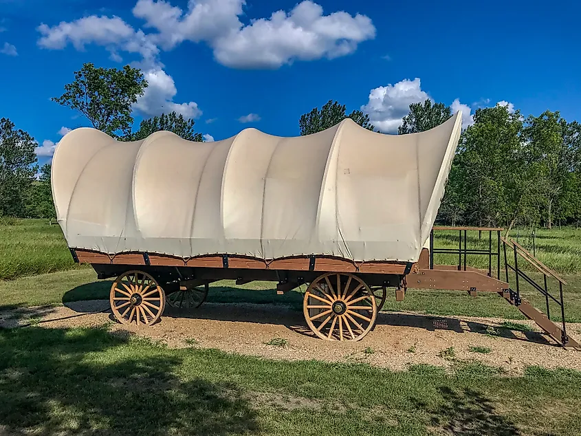 ノースダコタ州フォート・ランサム州立公園の屋根付きワゴン。