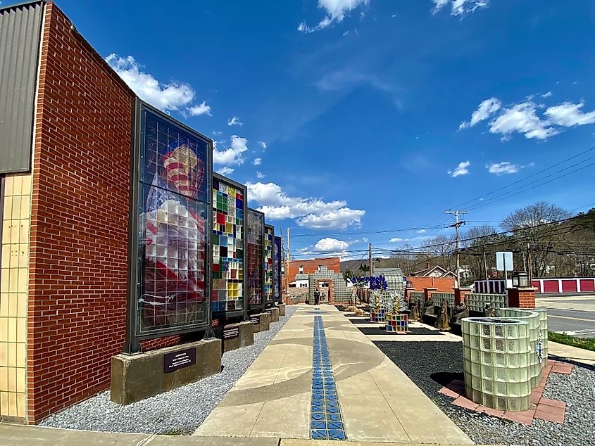 セレニティグラスパークは、ペンシルベニアワイルド地域にあるポートアレガニーのユニークなランドマークです。カリフォルニア州司教からマサチューセッツ州プロビンスタウンまで伸びる大陸横断高速道路である歴史的なルート6に沿って位置するこの公園は、ポートアレガニーのガラス製造の遺産、特にガラスブロックの生産に敬意を表します。小さなスペースには、背の高いエッチンググラスタワー、ガラス瓶の木、カスタムプランター、ワイヤーとガラスの彫刻などがあります。また、訪問者は曲がりくねった経路に沿って散歩して、地元のアーティストによって作成されたモザイクを見ることができます。その多くは、町の工場からの再生ガラスを取り入れています。これは、小さなコミュニティがパブリックアートと共有記憶を通して産業のルーツを称える方法の思慮深く創造的な例です。