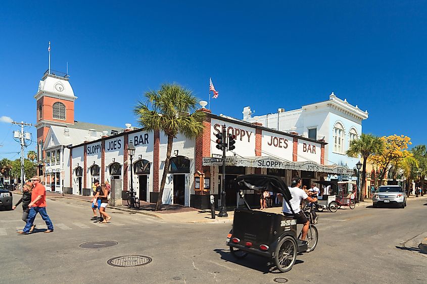 アメリカの作家でジャーナリストのアーネスト・ヘミングウェイがキーウェストで頻繁に通ったデュバル・ストリートの有名なスロッピー・ジョーズ・バー、Fotoluminate LLC / Shutterstock.com経由