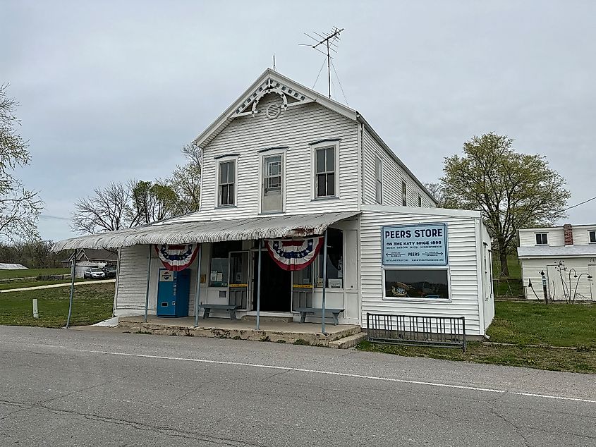 2014 年、ダンとコニー ブルクハルト夫妻はこの歴史ある雑貨店を取り壊しから守るために購入し、2015 年に新たな外観で再オープンしました。当初はアート ギャラリーに変わりましたが、その後、ミュージシャンやミズーリ川渓谷の住民の社交の場へと発展しました。屋外の看板には、音楽、スナック、ギフト、自然保護などの商品が誇らしげに表示されています。 2025 年現在、ピアーズ ストアは国家歴史登録財にも登録されており、ケイティ トレイル ルート沿いの象徴的なランドマークとして認識されています。 4 月から 10 月までオープンしており、訪問者はさわやかなドリンクや軽食を求めて立ち寄ったり、館内の歴史的な展示物を探索したり、正面のポーチで生演奏を楽しんだりできます。