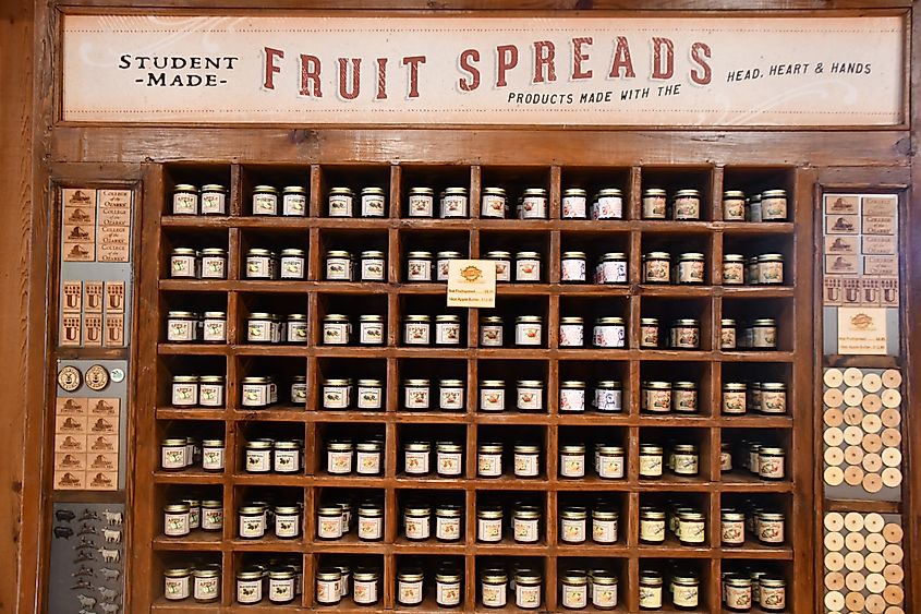 月曜日から土曜日の午前 9 時から午後 5 時まで営業するエドワーズ ミル & ジェネラル ストアは、昔ながらの技術を使って作られた製品を取り揃え、買い物客をタイムスリップさせます。現場では、近くのオナー湖から水車を動かして、学生が全粒粉と小麦粉を自分で挽いて販売し、店の有名なフルーツケーキを焼くのに使用します。さらに、訪問者は上階で学生たちのリズミカルな音が聞こえるかもしれません。学生たちはそこで、伝統的な織機を使って精巧なラグ、ショール、バスケットを手織りする作業に取り組んでいます。それらは店内で購入することもできます。店内のフルーツスプレッドやキャンドルなどの商品もすべて手作りです。