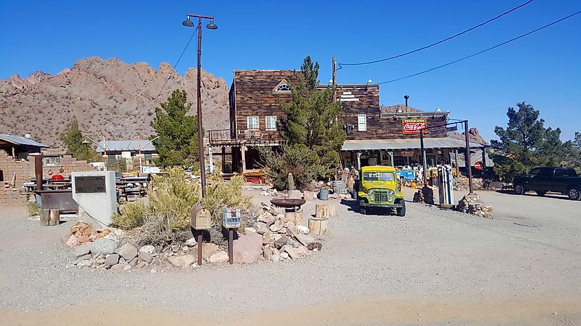 雑貨店は、錆びた車、風化した木の小屋、古典的なガソリンポンプ、レトロな道路標識など、古い映画のセットのようなこの個人所有の町を探索するのに最適な出発点です。ネルソンは、「グレースランドまで 3,000 マイル」などの映画のロケ地にもなりました。歴史愛好家は、雑貨店以外にも、ネバダ州で最も古く最も豊かな鉱山の 1 つである伝説のテチャティカップ鉱山を見学することができます。オリジナルの採掘設備や、かつてそこで働いていた屈強な鉱山労働者の物語が展示されています。