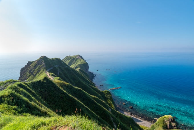 大都市札幌から気軽に日帰りできる神威岬は、見事な紺碧の海に囲まれた美しい岩だらけの半島で、素晴らしい海岸沿いのハイキングに最適です。海岸周辺の海は非常に透明で、それ自体が息を呑むほど美しい景色です。札幌からの途中で通る人気の観光都市小樽の近くにもあります。