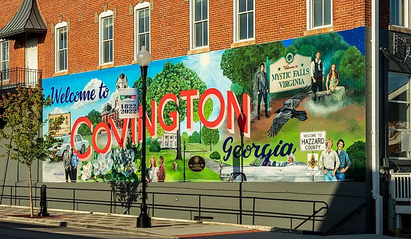 ジョージア州コビントンで撮影された映画を描いた建物の壁画。 ShutterStock経由の画像クレジットGeorges_Creations。