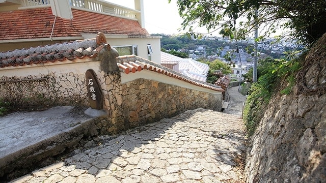 金城石畳街道は石灰岩で舗装された約300メートルの小道です。首里城からも近く、徒歩圏内にあるので、ゆっくり散策するのに最適なスポットです。