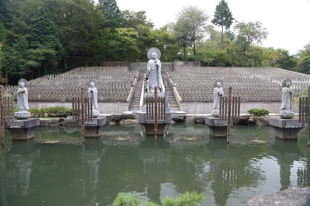 境内には多くのお堂があり、3,000体以上の水子地蔵が祀られています。見どころは、地蔵池の前に立つ巨大な水子地蔵と六地蔵です。紅葉の名所としても有名なので、紅葉の時期に訪れるのがおすすめです。