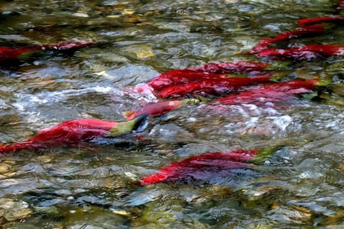 毎年秋には、サーモンを目当てに世界中から多くの観光客が「アダムズ リバー」を訪れます。ブリティッシュコロンビア州にはサケの遡上が観察できる川が約2,000本あると言われていますが、特にアダムズリバーはサケの遡上が異常に多いことで有名です。