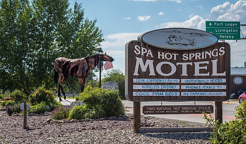 モンタナ州ホワイト・サルファー・スプリングスにあるスパ・ホット・スプリングス・モーテル。画像クレジット Cheri Alguire、Shutterstock より