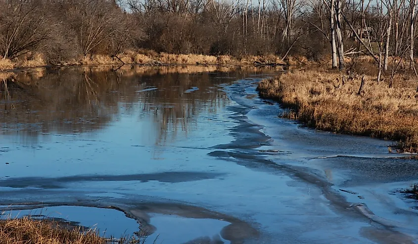 オッターテイル川はノースダコタ州ワーペトン付近でスーの森と合流してレッド川を形成します。