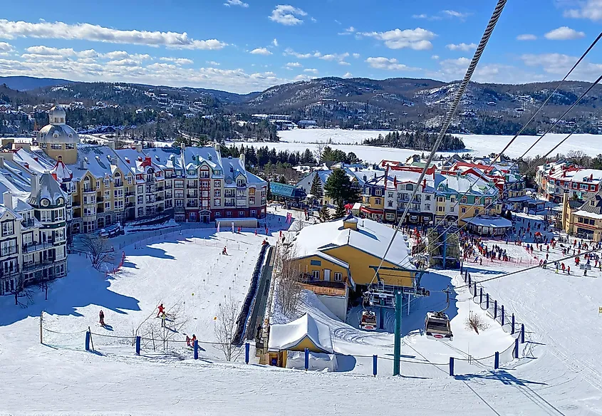 モントランブランもローレンシアン山脈に位置し、町とリゾート複合施設の両方として機能します。この自治体にはいくつかの部門があり、最も有名なのはモントランブラン スキー場のふもとにある歩行者村です。この特別な目的のために建てられた村には、さまざまなホテル、ショップ、レストランがあり、すべて石畳の小道、ゴンドラ、エレベーターで結ばれています。元々はサン ジョヴィテと呼ばれていた歴史的な町の中心部には、地元の企業や有名なレストラン ル ヴュー フールなどの飲食店が並ぶ伝統的なメイン ストリートがあります。