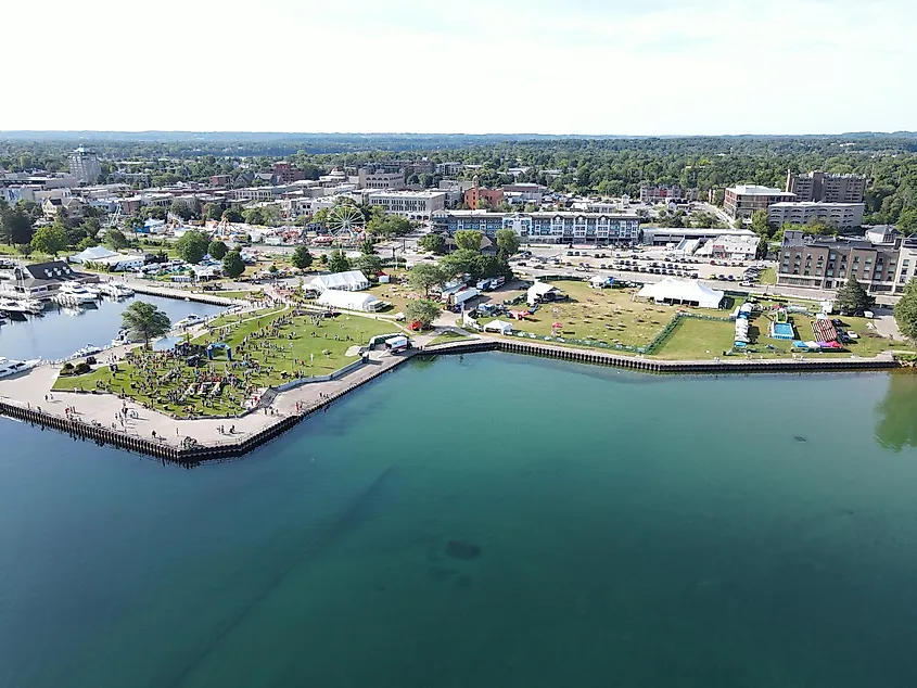 ミシガン州ペトスキーのウォーターフロントパークを見渡す。