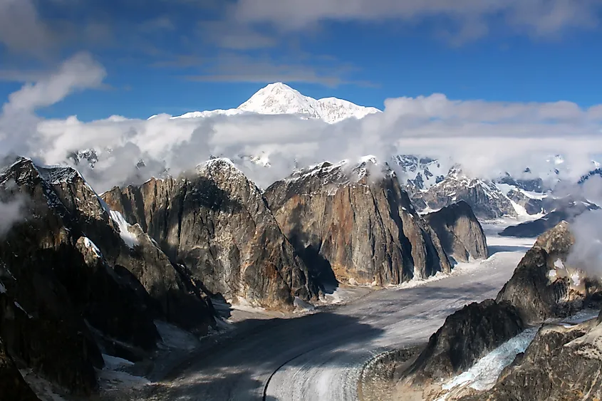 米国西部の巨人をさらに深く掘り下げて、北米で最も高い山の本拠地であるアラスカに目を向けましょう。名前は変わり続けていますが、標高 20,310 フィートのマッキンリー山、待ってください、デナリ、待ってません…マッキンリーは再びデナリ国立公園および保護区の中心であり、世界の 7 つの頂上の 1 つとして不動の地位を保っています。アラスカ州は国立公園を特に野生のままにしておくことを好みますが、デナリには道路が 1 本あります。最初の 15 マイルは舗装され、誰でも自由に通行できます。その後、比類のないアラスカ山脈までさらに 127 マイルを超える観光客は、バス (厳密な交通手段またはナレーション付きツアー) を利用できます。雲のない日には、デナリはマイル 9 から見ることができますが、奥に行けば行くほど景色は良くなります (さらに多くの野生動物が出現する可能性があります)。フェアバンクス国際空港からデナリのパーク ロードの始点までは 120 マイル/2 時間です。