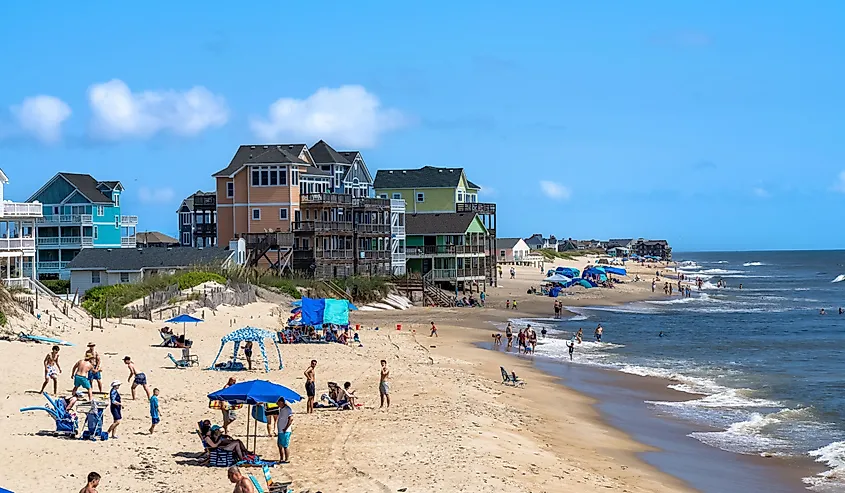 ナグス ヘッドはアウター バンクスの珍しい一帯に位置しており、町の境界線を越えることなく砂丘をハイキングしたり、難破船を発見したり、大西洋でサーフィンをしたりすることができます。東海岸で最も高い活発な砂丘があるジョッキーズ リッジ州立公園がメイン イベントです。凧揚げやサンドボード、ロアノーク湾に沈む夕日を眺めるのに最適です。ジェネットの桟橋は海に 300 フィート突き出ており、研究拠点と釣り場を兼ねています。日陰で休憩したいなら、ナグス ヘッド ウッズ保護区へ向かいましょう。海上森林小道が池や遺跡の砂丘を横切っています。水遊びをしたい場合は、街中で地元のアウトドア用品店がサーフィン レッスンやカヤックのレンタルを提供しています。