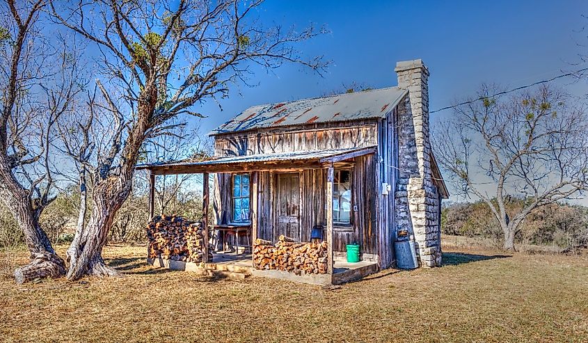 テキサス州マーブルフォールズ近くの古い小屋。