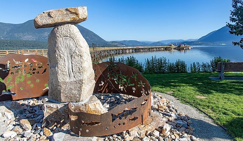 Secwpemc Landmarks ブリティッシュコロンビア州サーモンアームのシャスワップ海岸にあるサーモンアーム埠頭の入り口にある彫刻。画像クレジット 365 フォーカス写真(Shutterstock 経由)