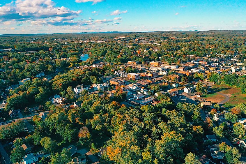 ニューハンプシャー州クレアモントの町にある素朴な建物の空中景色。画像クレジット:Joseph Sohm / Shutterstock.com