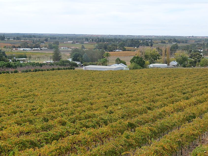 南オーストラリア州レンマークにある灌漑されたブドウ園。 Feral Arts – Vineyard @ Renmark による berichard によるアップロード、CC BY 2.0、ウィキメディア コモンズ。